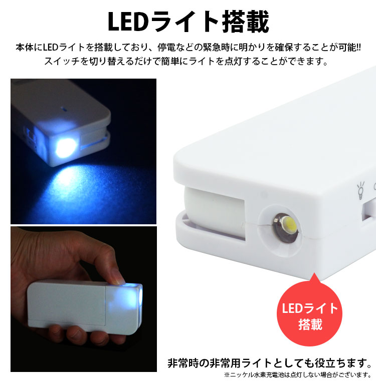 本体にLEDライトを搭載しており、停電などの緊急時に明かりを確保することが可能!!