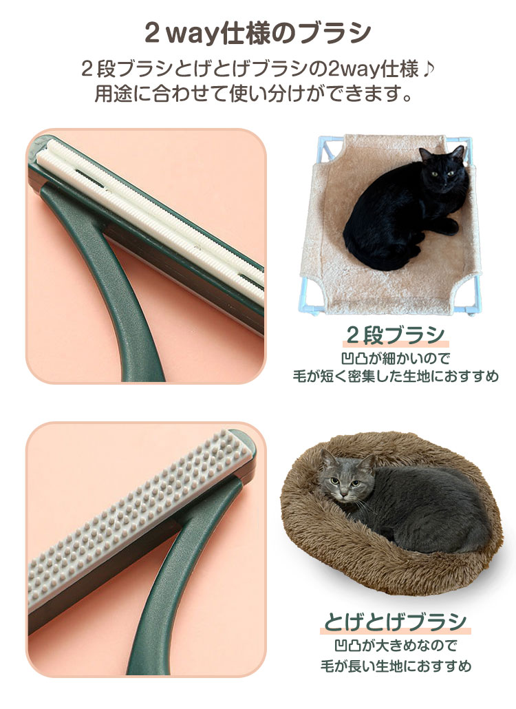 2way仕様のブラシでペットベッドやキャットタワーなどの