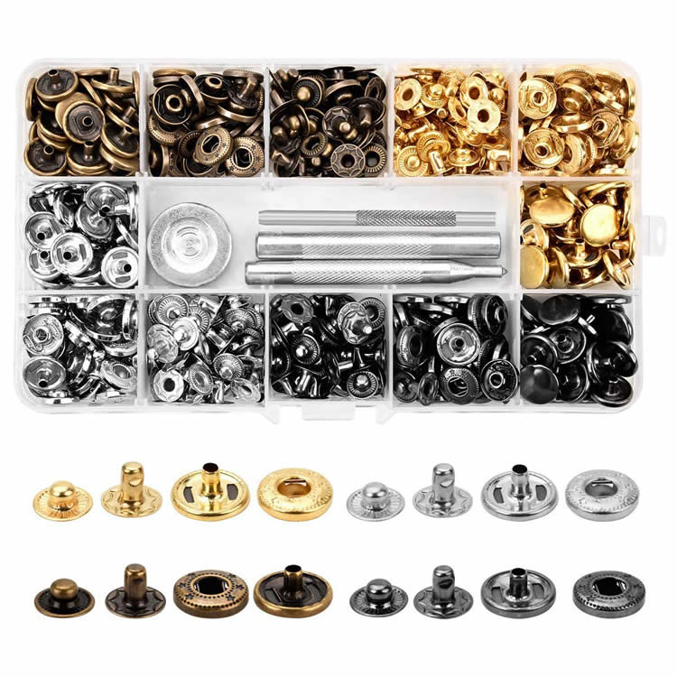 バネホックやスタッズ、専用の打ち具を一箱に揃えた便利なセット。