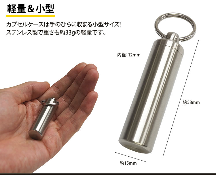 ステンレス製で高耐久・小型・軽量の防水カプセルケース!