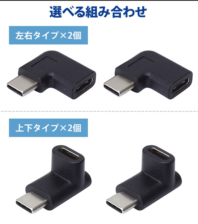 変換アダプタで向きを変えることでケーブルを無理に曲げる必要がないので断線のリスクを軽減できます。