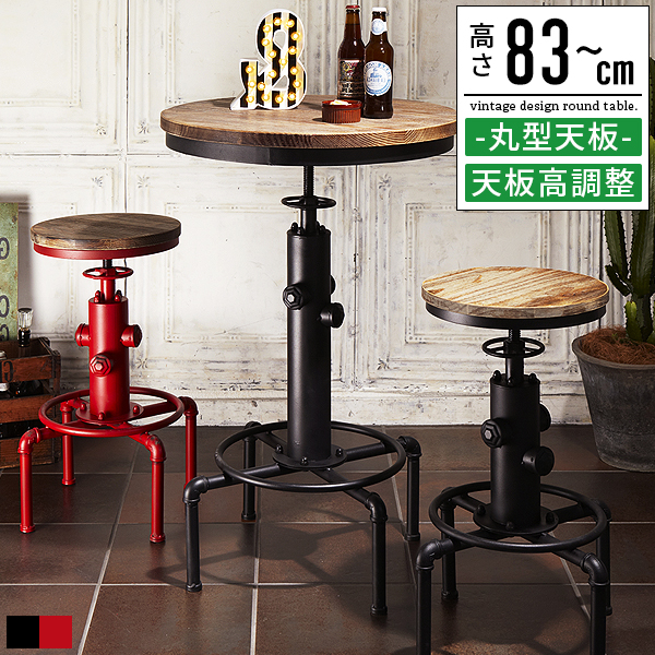 テーブル カフェテーブル 丸 昇降式 高さ調節 カウンターテーブル バーテーブル バーカウンターテーブル ハイテーブル ダイニングテーブル ラウンドテーブル コーヒーテーブル リビング キッチンテーブル 丸テーブル 昇降式テーブル 昇降テーブル リフトアップテーブル リフティングテーブル 円形 木製 無垢 アイアン スチール 高さ90cm 高さ100cm 黒 赤 ブラック レッド ヴィンテージ レトロ インダストリアル ブルックリン 男前インテリア 西海岸 シンプル アンティーク 幅60cm 60幅