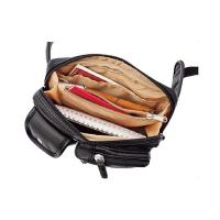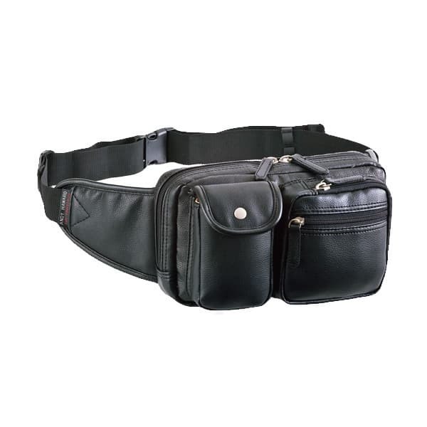 正面:ファスナー付アウトポケット、ファスナーポケット、カブセ付ポケット、本体内部:中仕切りファスナーポケット、アテポケット、背面:ファスナーポケット、大開きタイプ