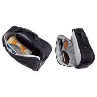 正面:2段ファスナーポケット、背面:ファスナーポケット付キャリーバー通し、本体内部:ファスナーポケット、可倒式底板、Y付内部:アテポケット、2分割片ササマチポケット、ペン差し、着脱式ショルダーベルト、上部取手、キャリーバー通し付きで、キャリーを使った移動に大変便利です、本体サイズのアウトポケット付
