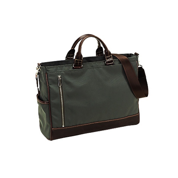グラフィット(GRAFIT)2WAY 無地 シンプル ナイロン キャリーバー通し タブレット対応 消臭 抗菌 B4対応 ビジネスバッグ(カーキ)