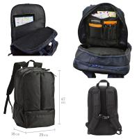 正面ファスナーアウトポケット×3、20リットル、B4サイズ対応、正面ファスナーアウトポケット、内部ネットポケット、片側面小物ポケット、メインルーム前室ファスナーポケット、小物ポケット×3、ペン差し、メインルーム後室ウレタン内装アテポケット、チェストハーネス付