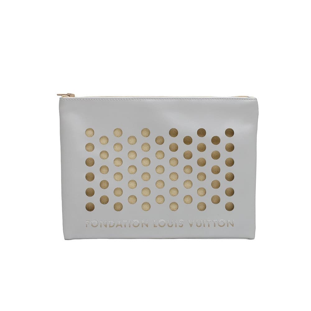フォンダシオンルイヴィトン(FONDATION LOUIS VUITTON)ドット柄 水玉柄 ロゴ ルイヴィトン美術館限定 クラッチバッグ(シルバー シルバーグレー)