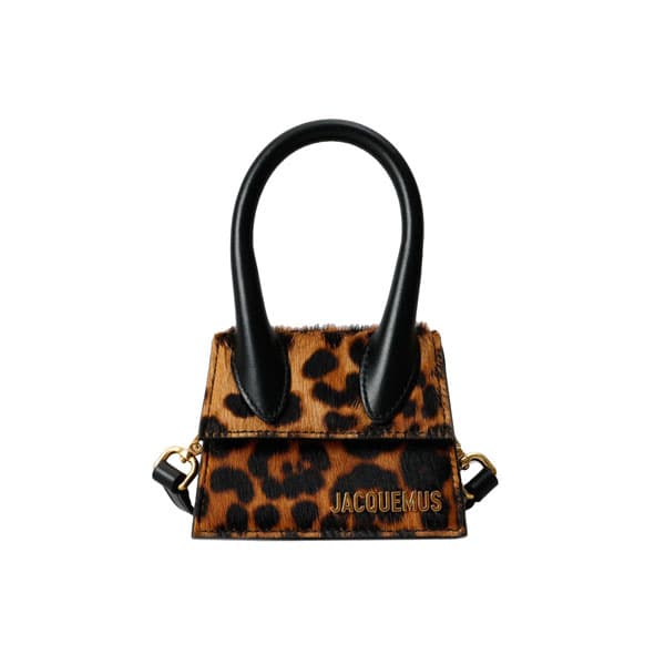 ジャックムス(JACQUEMUS)WOMEN-BAGS-TOP HANDLE レオパード柄 ヒョウ柄 レザー ロゴ 2WAY 斜めがけ 斜め掛け ななめがけ ハラコ ハンドバッグ(ブラック系/ブラウン系)