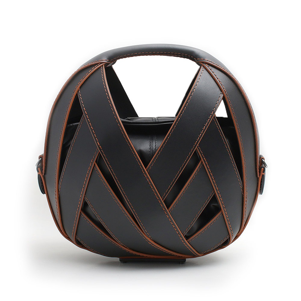 ペラン(PERRIN PARIS)レザー バスケット織り 2WAY ショルダーバッグ(ブラック)