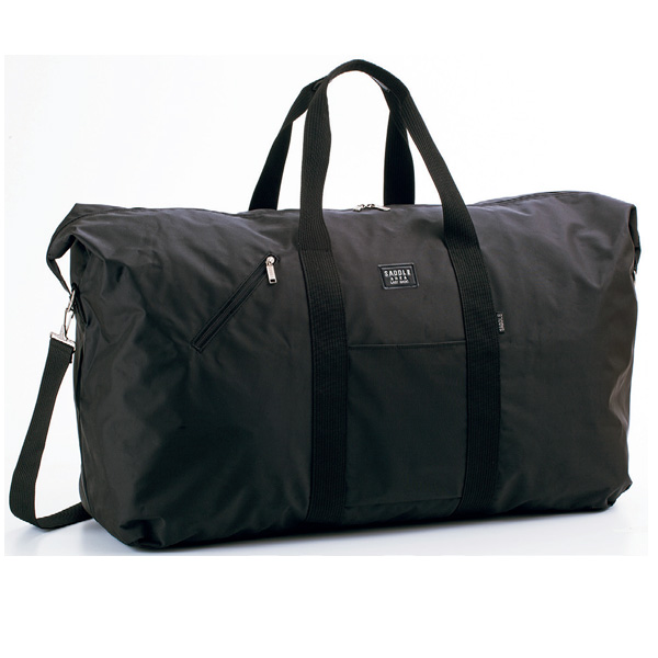 サドル(SADDLE)ロゴ シンプル 2WAY 大容量 軽量 折りたたみ コンパクト ボストンバッグ(ブラック)