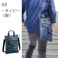 サドル(SADDLE)レザー シンプル A4対応 2WAY ショルダーバッグ(ネイビー)