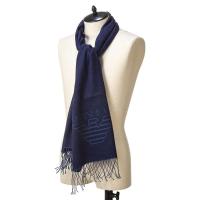 アルマーニジーンズ(Armani Jeans)イーグルロゴウール カシミア マフラー(ブルーデニム)