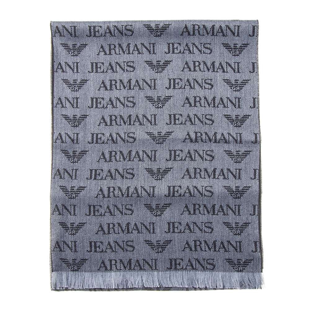 アルマーニジーンズ マフラー メンズ ARMANI JEANS イーグルロゴ ロゴ柄 ウール グレー