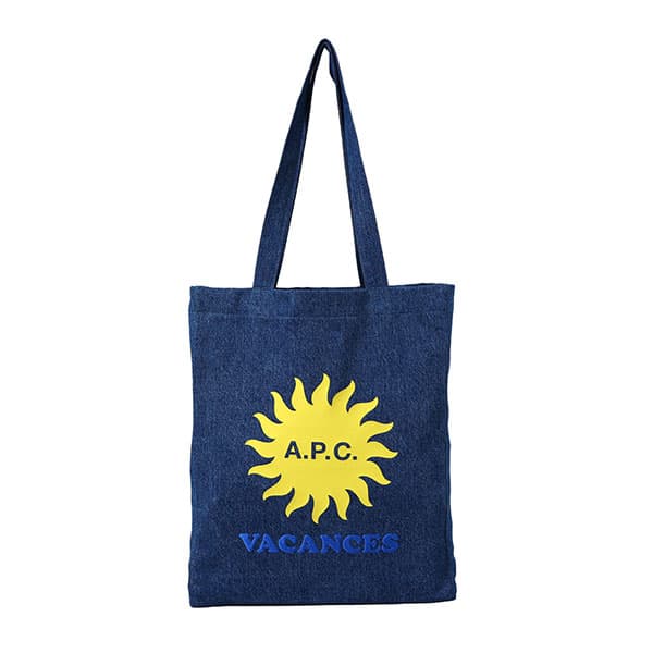 アーペーセー(APC)TOTE LOU VACANCES ロゴプリント VACANCES シンプル 2WAY トートバッグ(ブルー系)