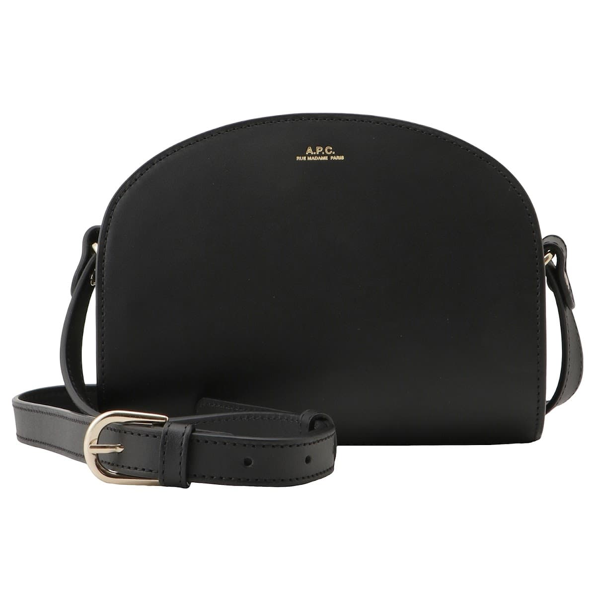 アーペーセー(APC)斜めがけ レザー ロゴ 無地 シンプル ハーフムーン ショルダーバッグ(ブラック)