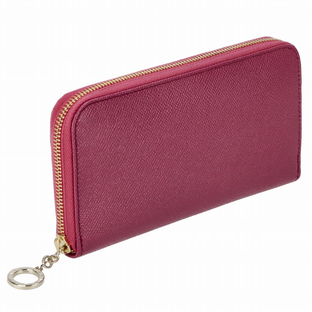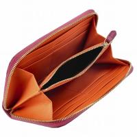 ブルガリ(BVLGARI)ラウンドファスナー レザー ミニマル シンプル 長財布(ヘザーアメジストピンク タンジェリンガーネットオレンジ)