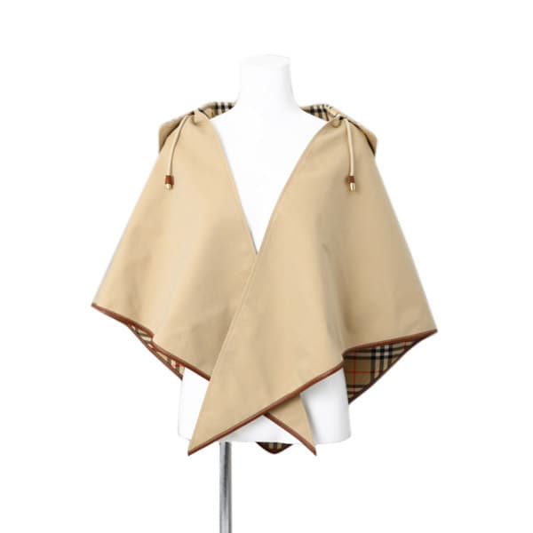 バーバリー(BURBERRY)CAPESHONEY フード チェック柄 フーディ レザー ポンチョ(キャメル系)