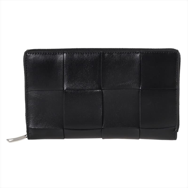 ボッテガヴェネタ 長財布 ロングウォレット メンズ&レディース BOTTEGA VENETA レザー ラウンドファスナー 編み込み Black