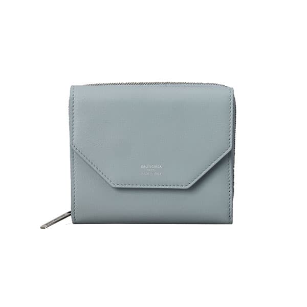 バレンシアガ 二つ折り財布 ミニ財布 レディース ENV COMPACT WALL FL BALENCIAGA レザー ロゴ シンプル ブルーグリーン系