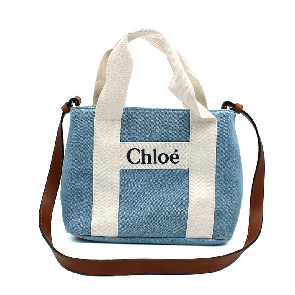 クロエ ハンドバッグ ショルダーバッグ 手提げかばん レディース Chloe ロゴ 2WAY レザー デニムブルー