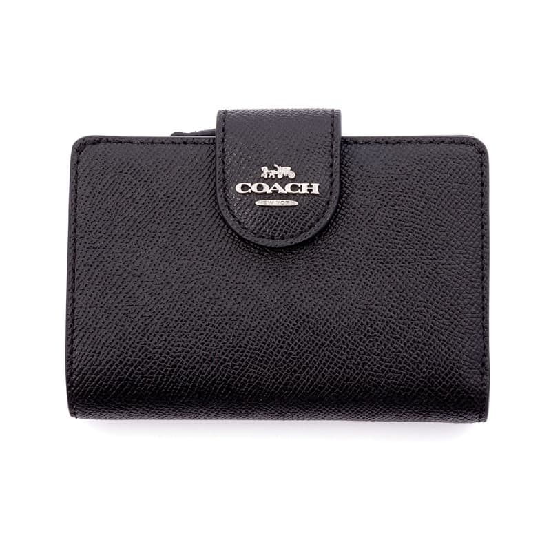 コーチ 二つ折り財布 ミニ財布 レディース COACH レザー ロゴ ブラック/シルバー
