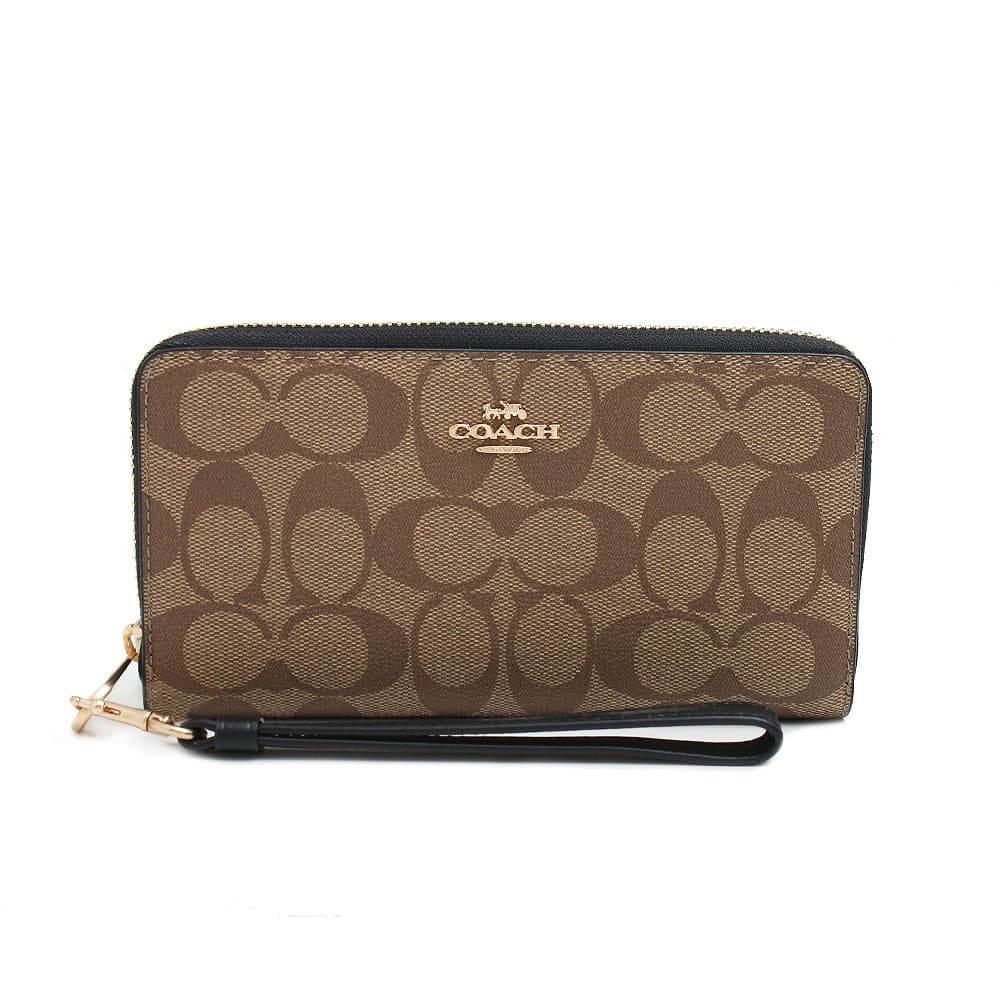 コーチ 長財布 ロングウォレット レディース SIGNATURE COACH ラウンドファスナー モノグラム柄 ロゴ カーキ ブラック