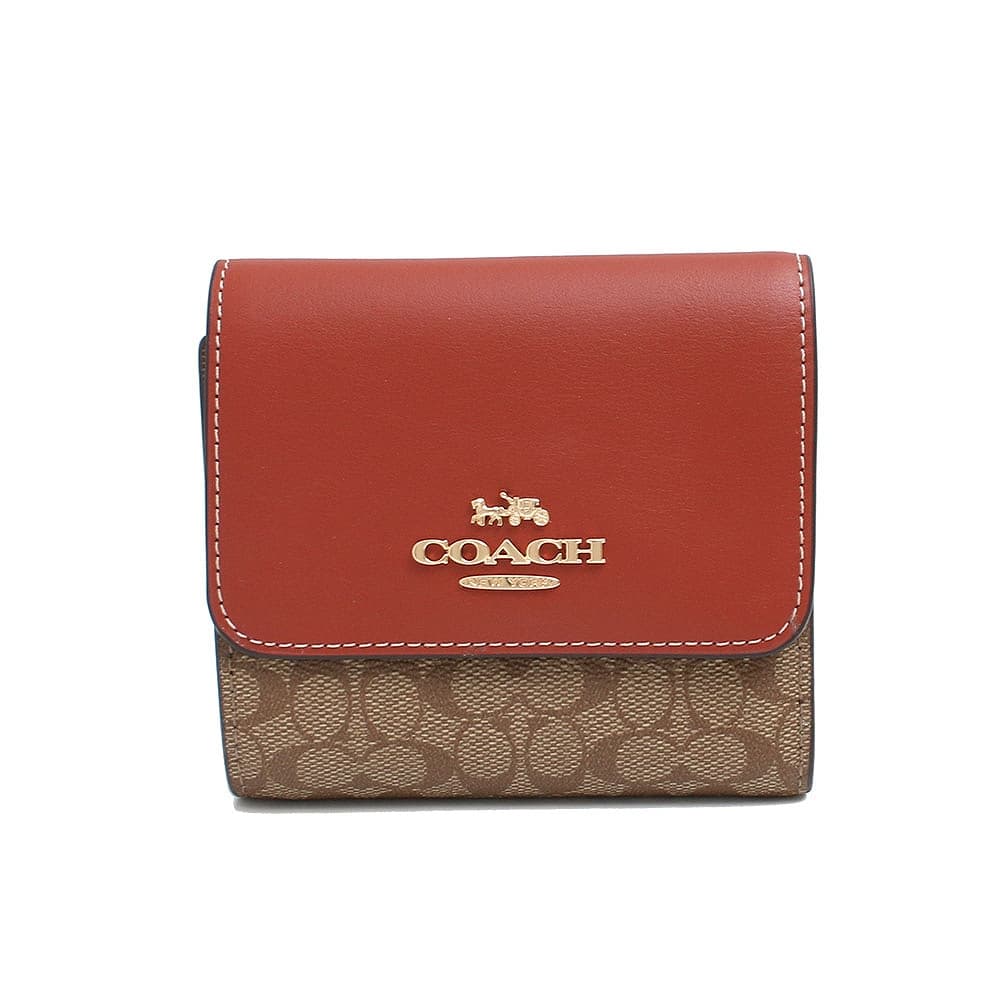 コーチ 三つ折り財布 ミニ財布 レディース SIGNATURE COACH モノグラム柄 ロゴ レザー カーキ/テラコッタ