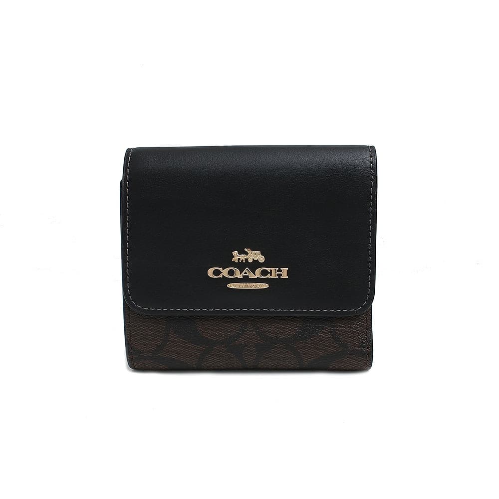 コーチ 三つ折り財布 ミニ財布 レディース SIGNATURE COACH モノグラム柄 ロゴ レザー ブラウン/ブラック