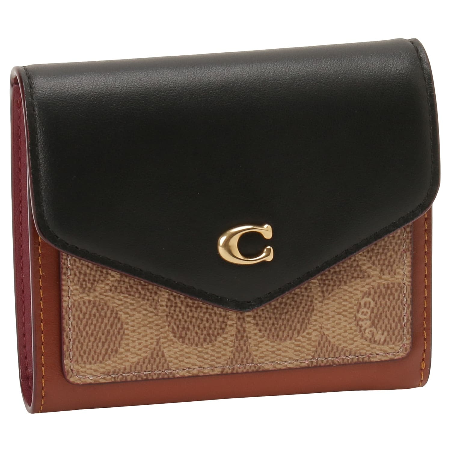 コーチ 三つ折り財布 ミニ財布 レディース Colorblock Wyn Small Wallet COACH レザー ロゴ シンプル タンブラック/ゴールド