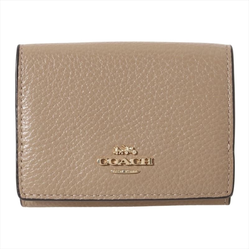 コーチ(COACH)レザー シンプル ロゴ ミニマル 無地 三つ折り財布(トープ)