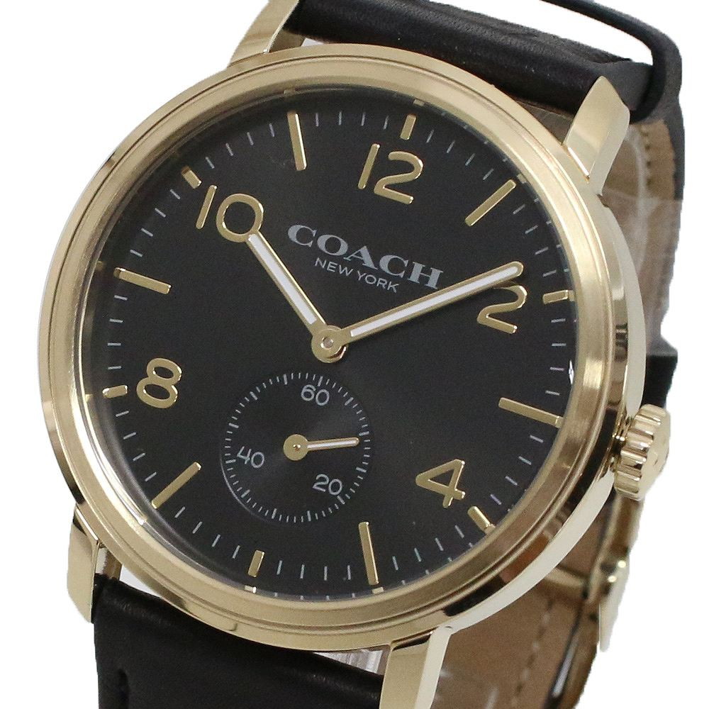 コーチ(COACH)クオーツ レザーベルト ロゴ スモールセコンド 多針アナログ 腕時計(ブラック/ゴールド)