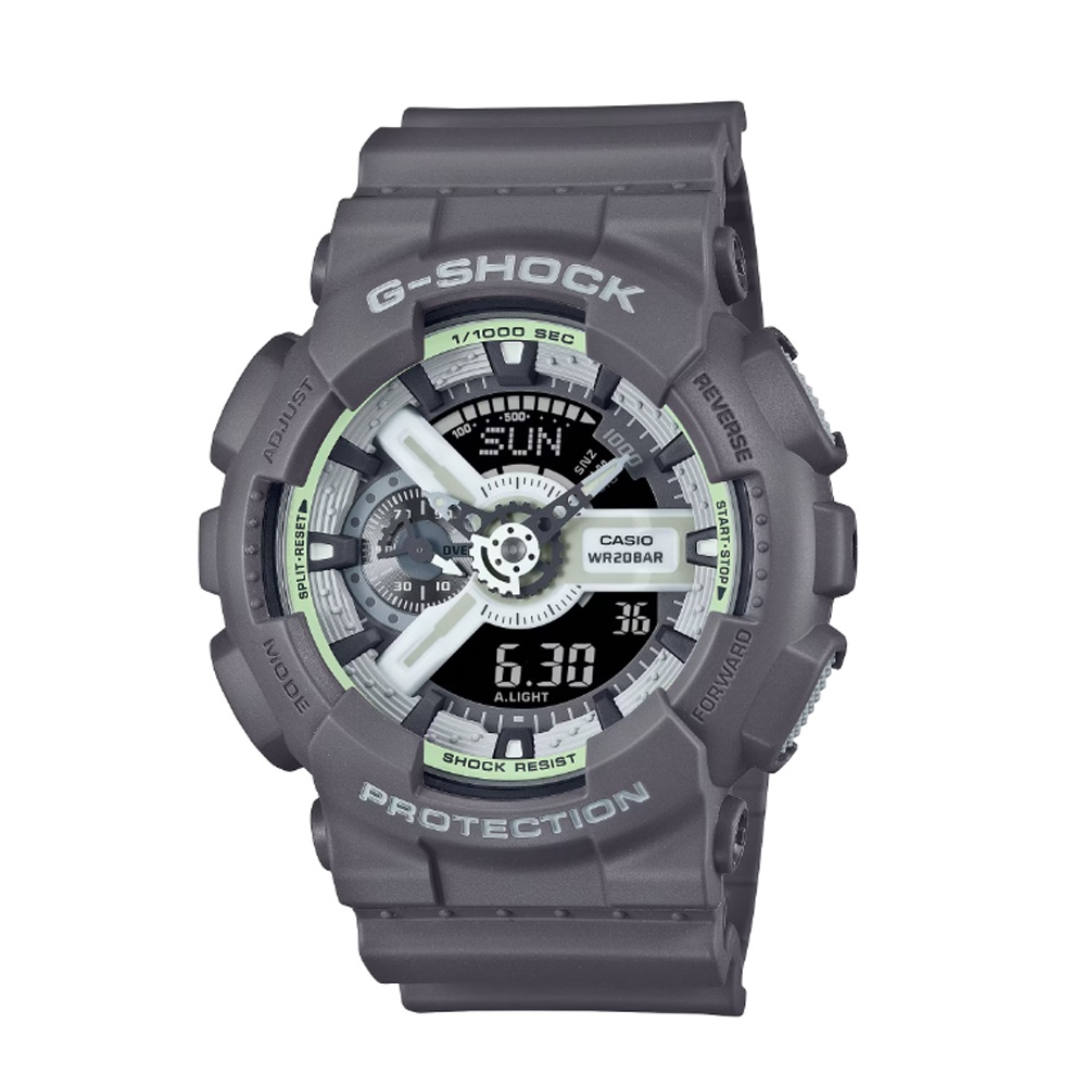 カシオ(CASIO)の腕時計です。1983年の発売以来、飽くなき強さを求めて進化を続けるタフネスウオッチG-SHOCKから、人々の潜在能力を暗闇で光る蓄光パーツでイメージした、HIDDEN GLOWシリーズです。 暗闇をイメージしたグレーのベースカラーで統一し、フェイス部分には蓄光パーツを採用。