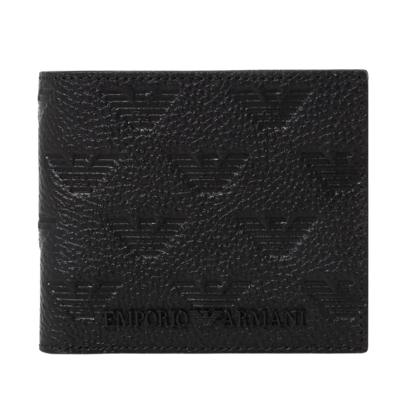 エンポリオアルマーニ(EMPORIO ARMANI)レザー モノグラム柄 エンボスロゴ 二つ折り財布(BLACK)
