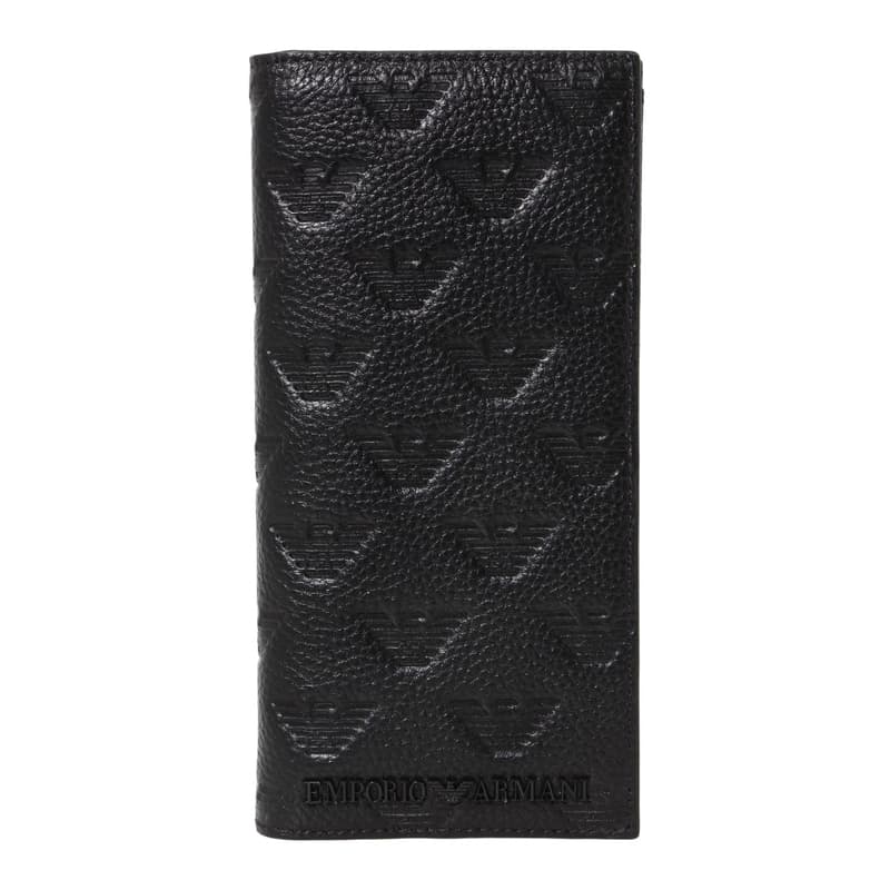 エンポリオアルマーニ 長財布 ロングウォレット メンズ EMPORIO ARMANI レザー モノグラム柄 エンボスロゴ BLACK