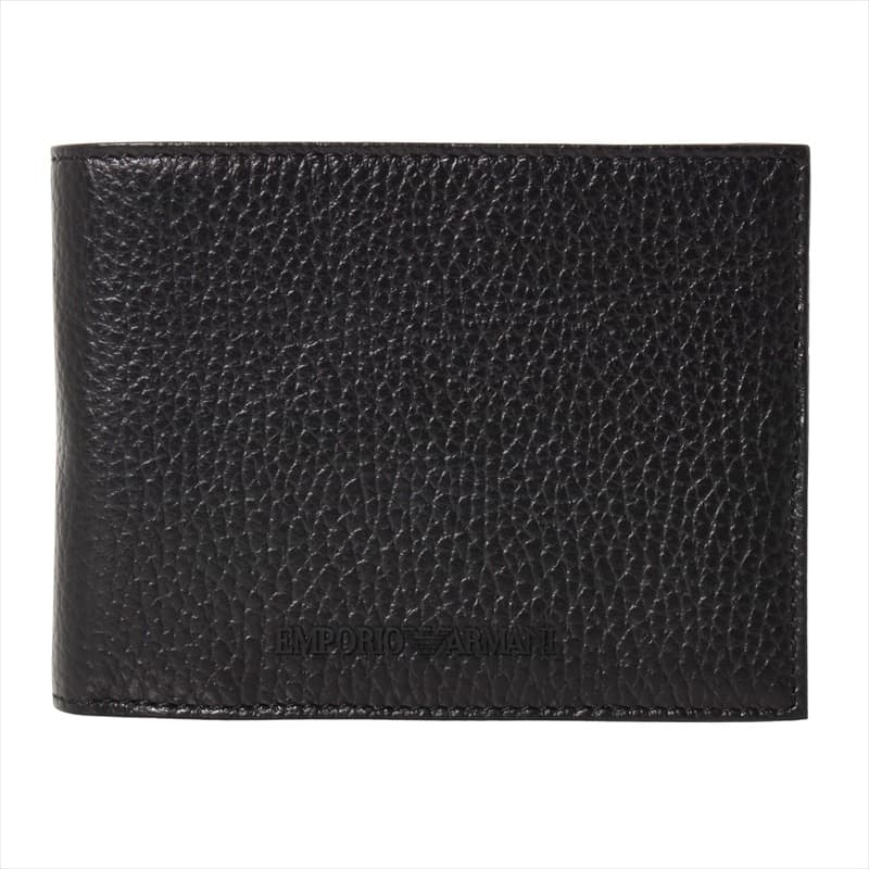 エンポリオアルマーニ(EMPORIO ARMANI)レザー ロゴ シンプル 二つ折り財布カードケースセット(ブラック)