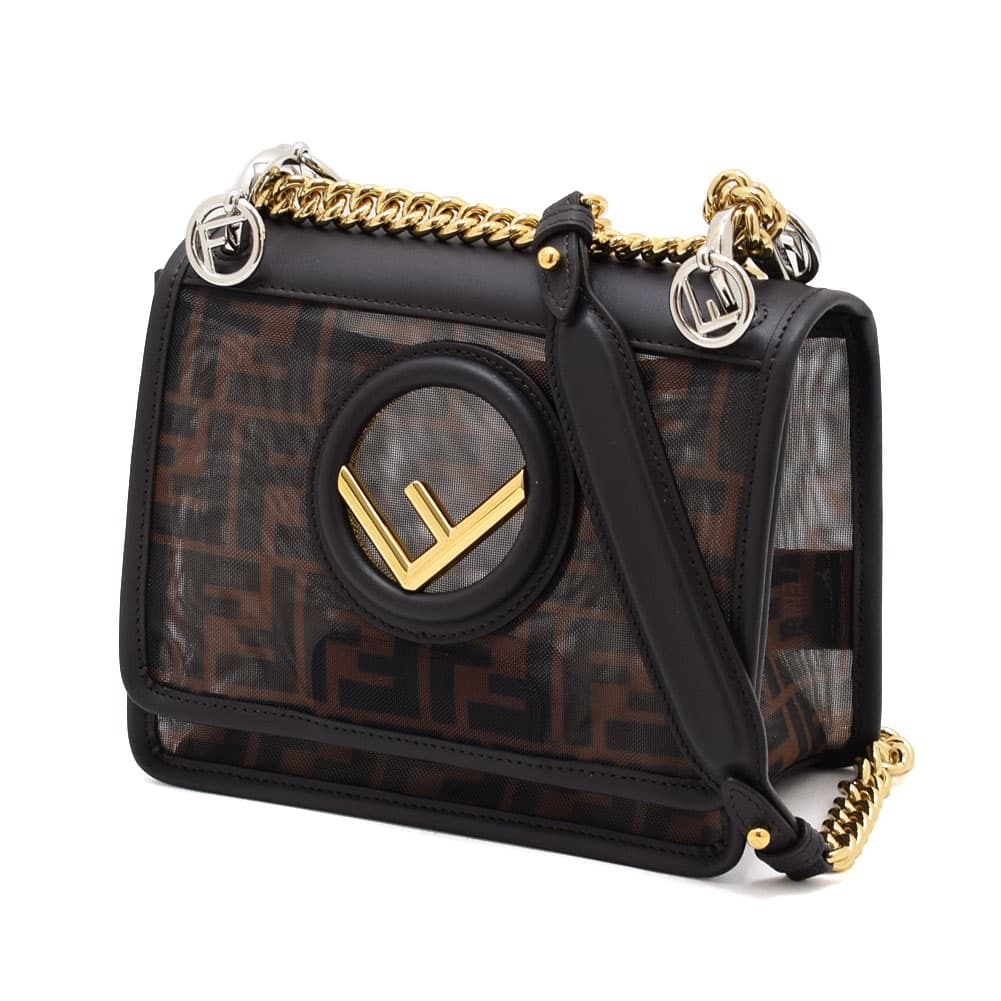 フェンディ(FENDI)チェーン ロゴモノグラム柄 ショルダーバッグ(ブラウン)