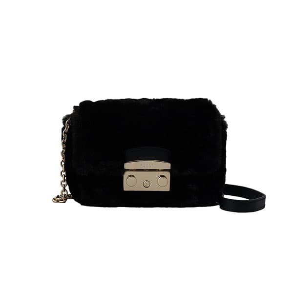フルラ(FURLA)METROPOLIS MINI CROSSBODY 斜めがけ 斜めがけ 斜め掛け ななめがけ ファー モコモコ フワフワ ショルダーバッグ(ブラック系)