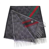グッチ(GUCCI)ウール ロゴモノグラム フリンジ マフラー(ブラック グレー)