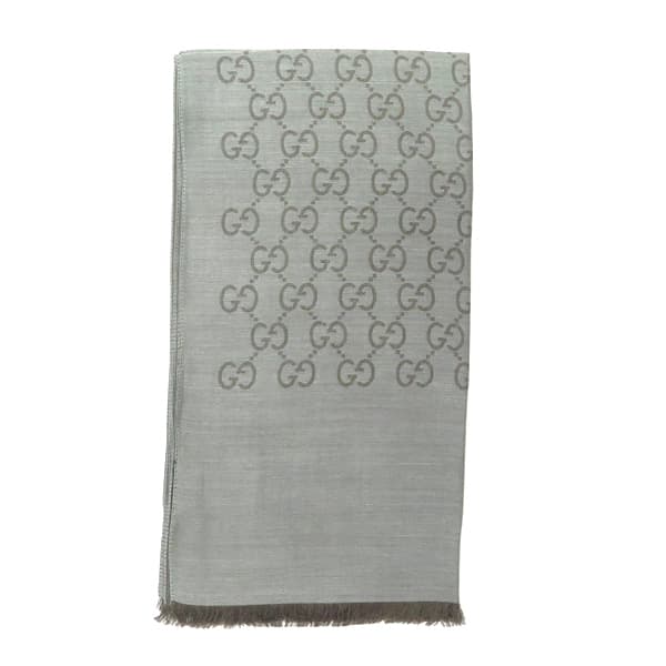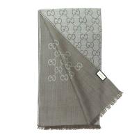 グッチ(GUCCI)シルク混 ロゴモノグラム フリンジ リバーシブル ストールマフラー(ライトブラウン)