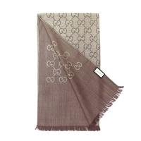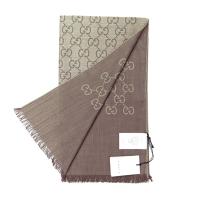 グッチ(GUCCI)シルク混 ロゴモノグラム フリンジ リバーシブル ストールマフラー(ブラウン)