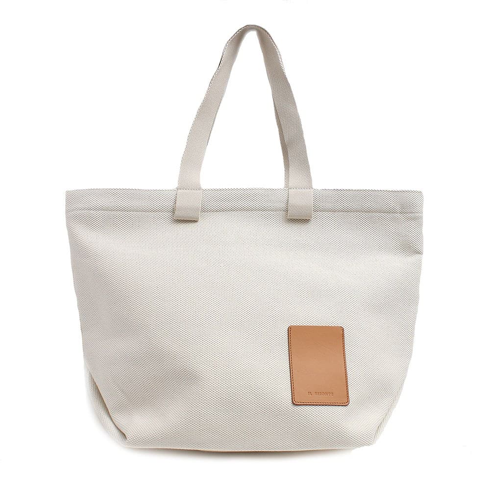 イルビゾンテ(IL BISONTE)コットン レザー ロゴ シンプル ハンドバッグ(ナチュラル ホワイト)