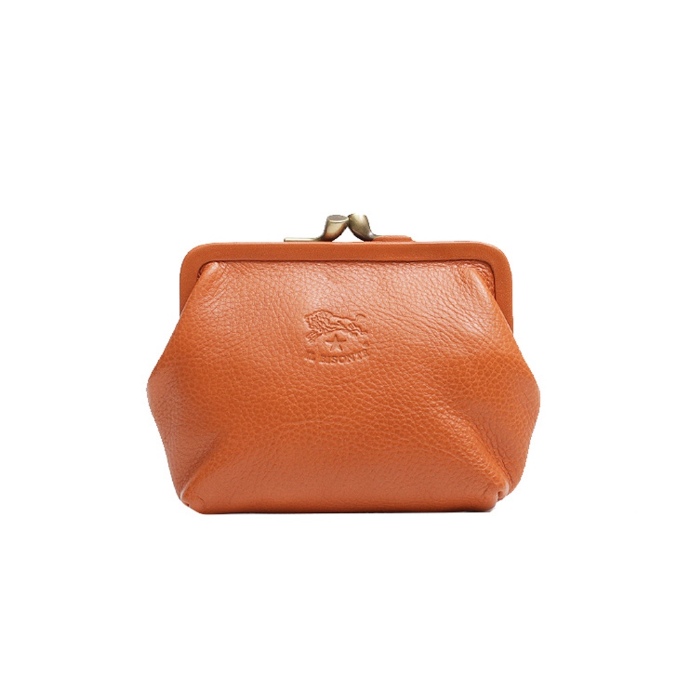 イルビゾンテ(IL BISONTE)がま口 レザー ロゴ シンプル コインケース(キャメル)