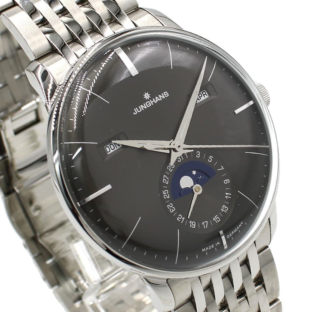 ユンハンス(JUNGHANS)マイスター MEISTER 多針アナログ 自動巻き 機械式 カレンダー ムーンフェイズ スケルトン シースルー ラウンド 腕時計(グレー/シルバー)