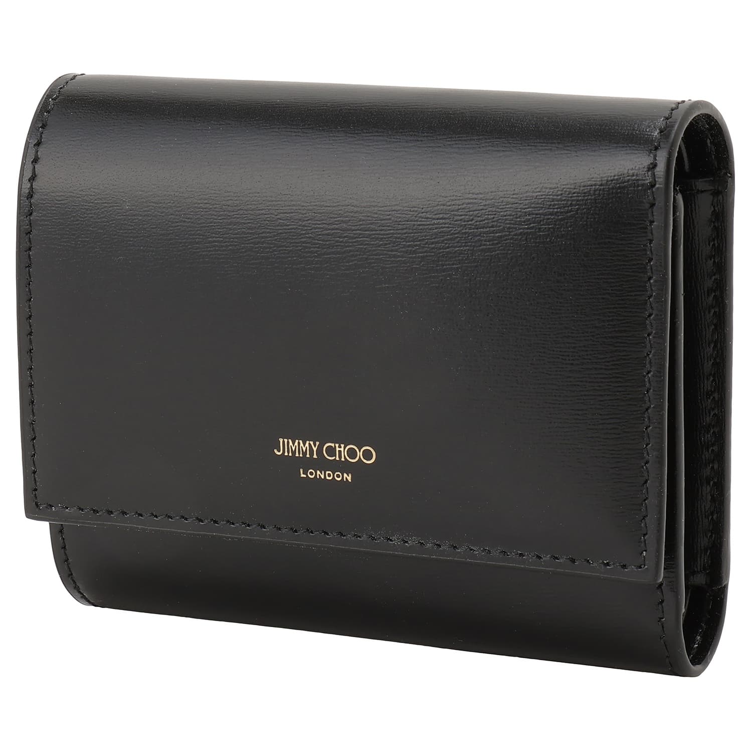ジミーチュウ 三つ折り財布 ミニ財布 レディース JIMMY CHOO レザー シンプル ミニマル ブラック/ライトゴールド