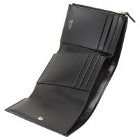 ジミーチュウ(JIMMY CHOO)レザー シンプル ミニマル ロゴ 無地 三つ折り財布(ブラック/ライトゴールド)
