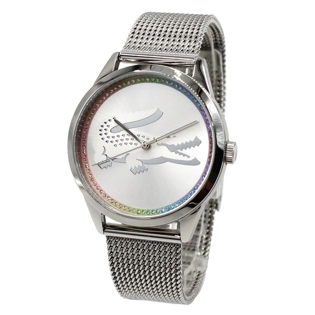 ラコステ(LACOSTE)アナログ クオーツ ロゴ メッシュベルト ラインストーン 腕時計(シルバー/シルバー)