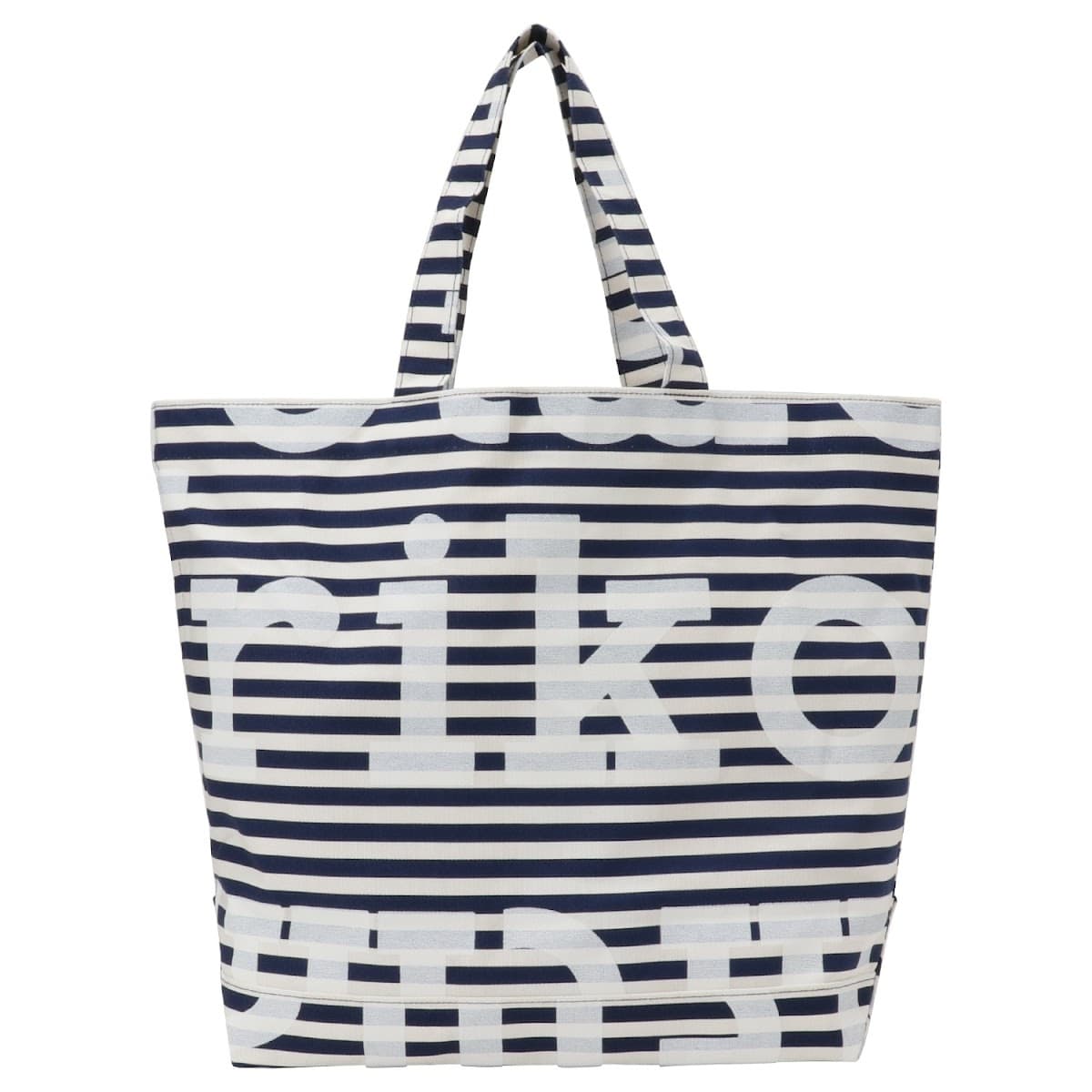 マリメッコ(marimekko)ボーダー柄 ロゴ柄 トートバッグ(ダークブルー×オフホワイト)