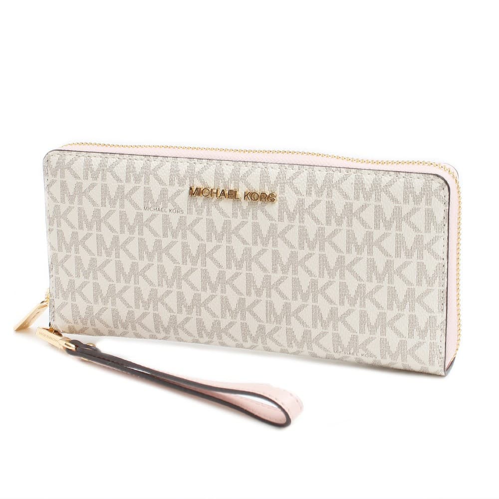 マイケルコース ハンドストラップ長財布 レディース JET SET TRAVEL MICHAEL KORS ラウンドファスナー ロゴモノグラム柄 パウダーブラッシュマルチ ホワイト
