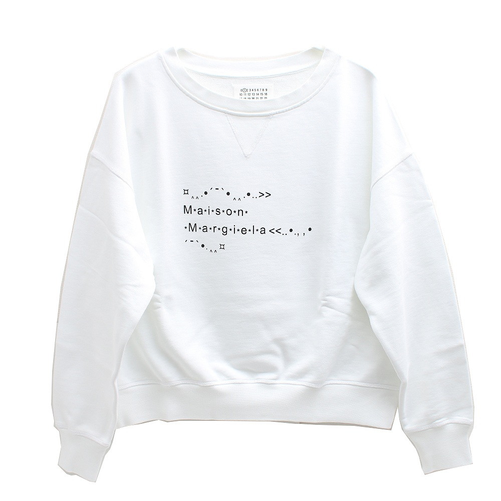 メゾンマルジェラ(MaisonMargiela)長袖 ボートネック クルーネック ロゴ プリント スウェット Sサイズ(ホワイト)