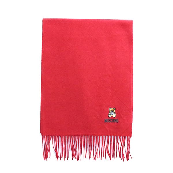 モスキーノ(MOSCHINO)フリンジ 無地 ロゴ刺繍 シンプル ミニマル マフラー(レッド)